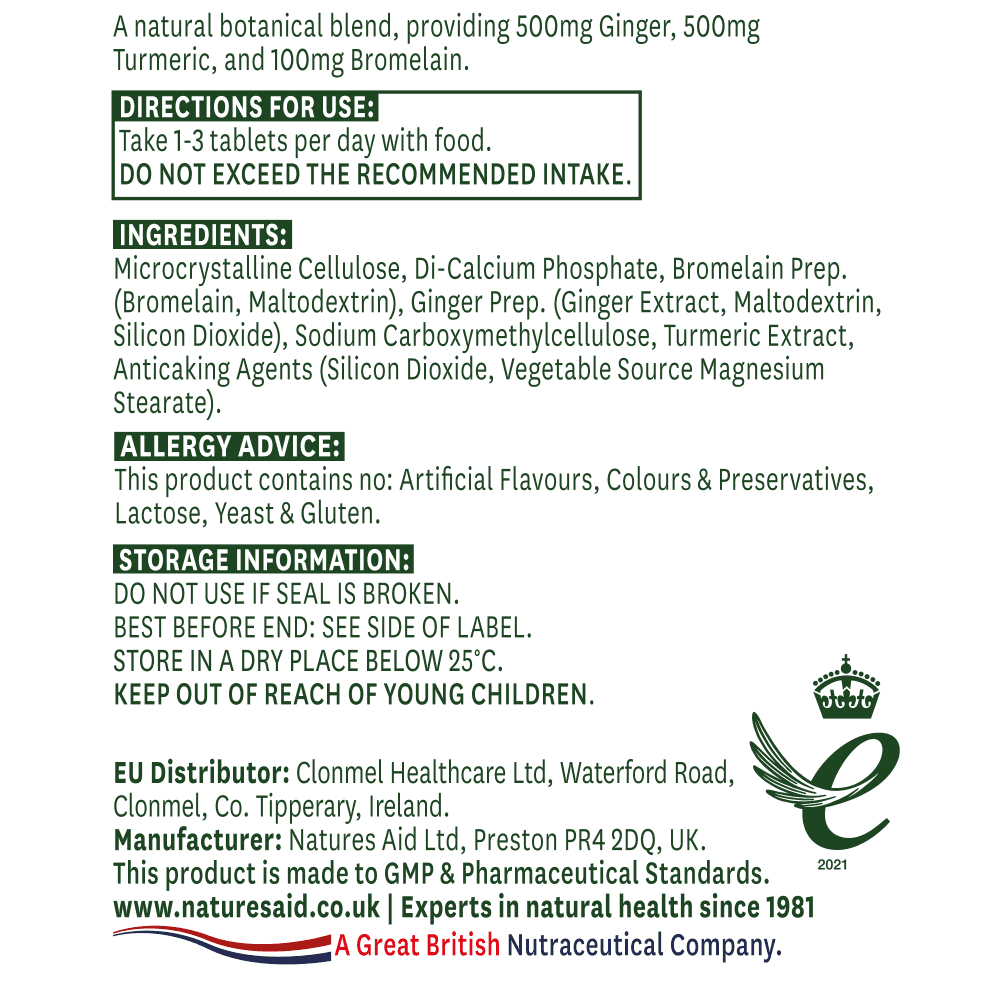 Home Natures Aid Ginger, Turmeric & Bromelain