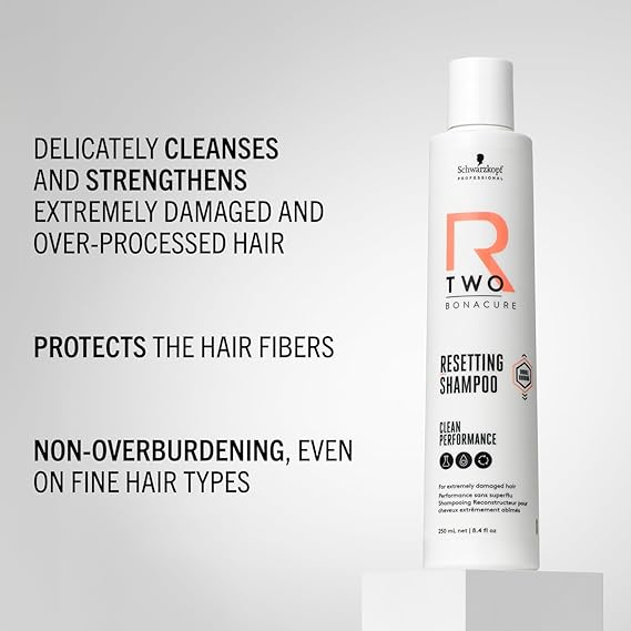 • Revive your damaged hair instantly with Bonacure R-TWO Resetting Shampoo from Schwarzkopf Professional, which builds new bonds and restores strength.