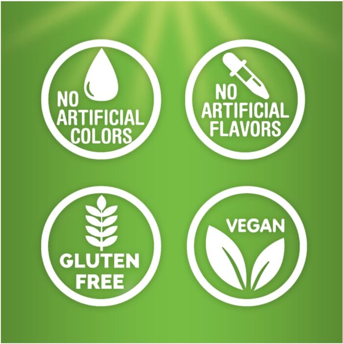 - Dye Free, gluten free, vegan with no artificial colors or flavors